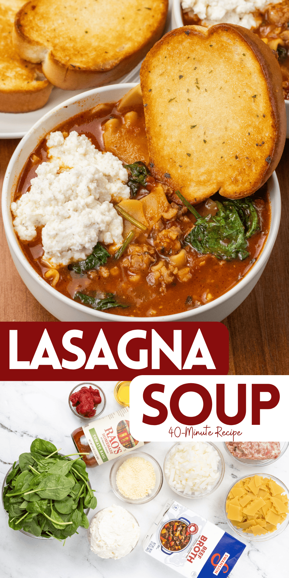This Lasagna Soup delivers all the comforting flavors of lasagna in an easy-to-make soup. With tender noodles, savory sausage, and a creamy ricotta topping, it's a cozy weeknight meal.